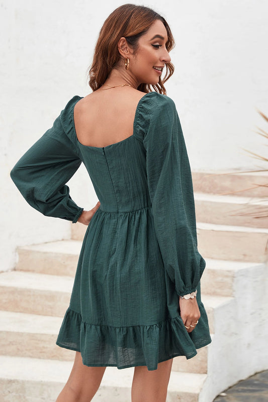 Autumn Annette Flounce Long Sleeve Mini Dress | Green