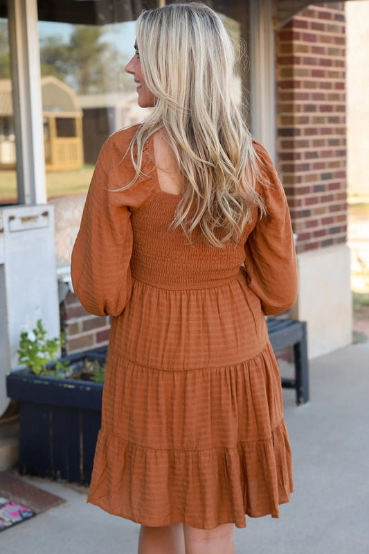 Cozy Coco Boho Long Sleeve Dress | Brown