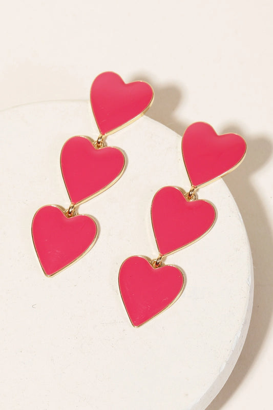 Pink Enamel Heart Layered Drop Earrings