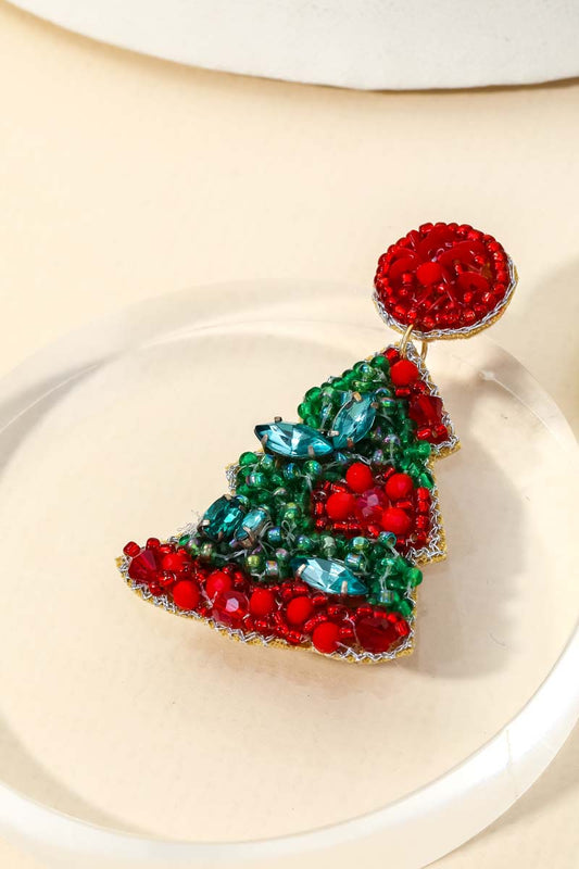 Christmas Tree Beaded Earrings