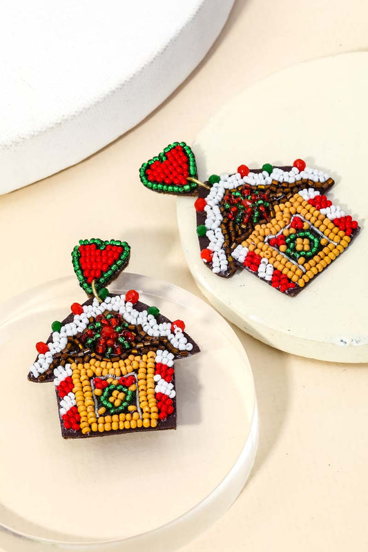Gingerbread House Beaded Earrings
